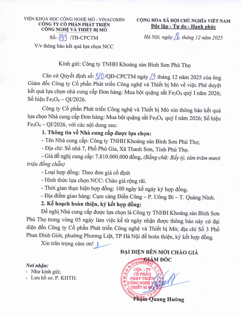 CÔNG TY CỔ PHẦN PHÁT TRIỂN CÔNG NGHỆ VÀ THIẾT BỊ MỎ